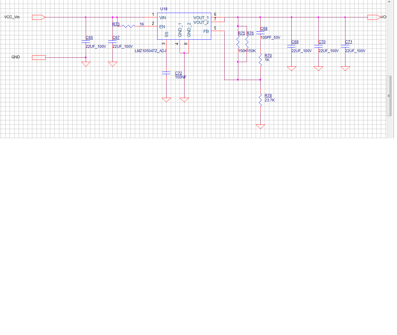 (这个电路只是板子上一小部分,整个系统的架构是,两块电源供电,每个电源输出5V,在背板上oring,之后的电压给LMZ10504TZ_ADJ供电,所以,热插拔的时候,一块板子是通电的,被插的电源是没有通电的)