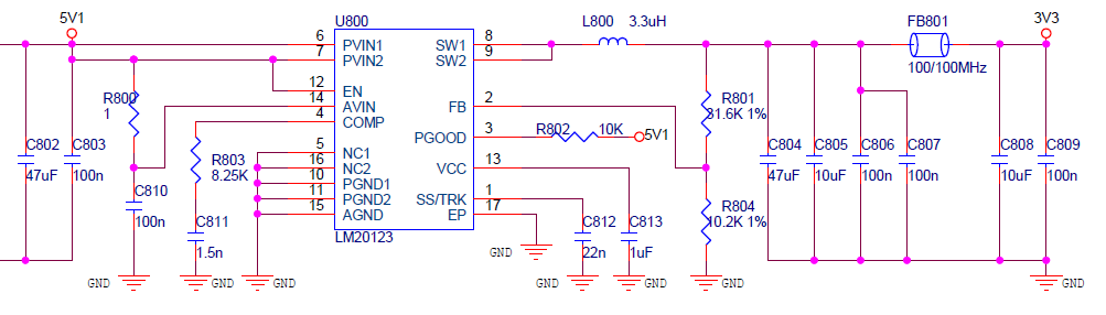 电路接法就是推荐的典型接法,SW脚的电压已经超过器件手册规定的最大值和最小值了,这个会影响芯片寿命吗?该如何减小SW脚的过冲电压呢?