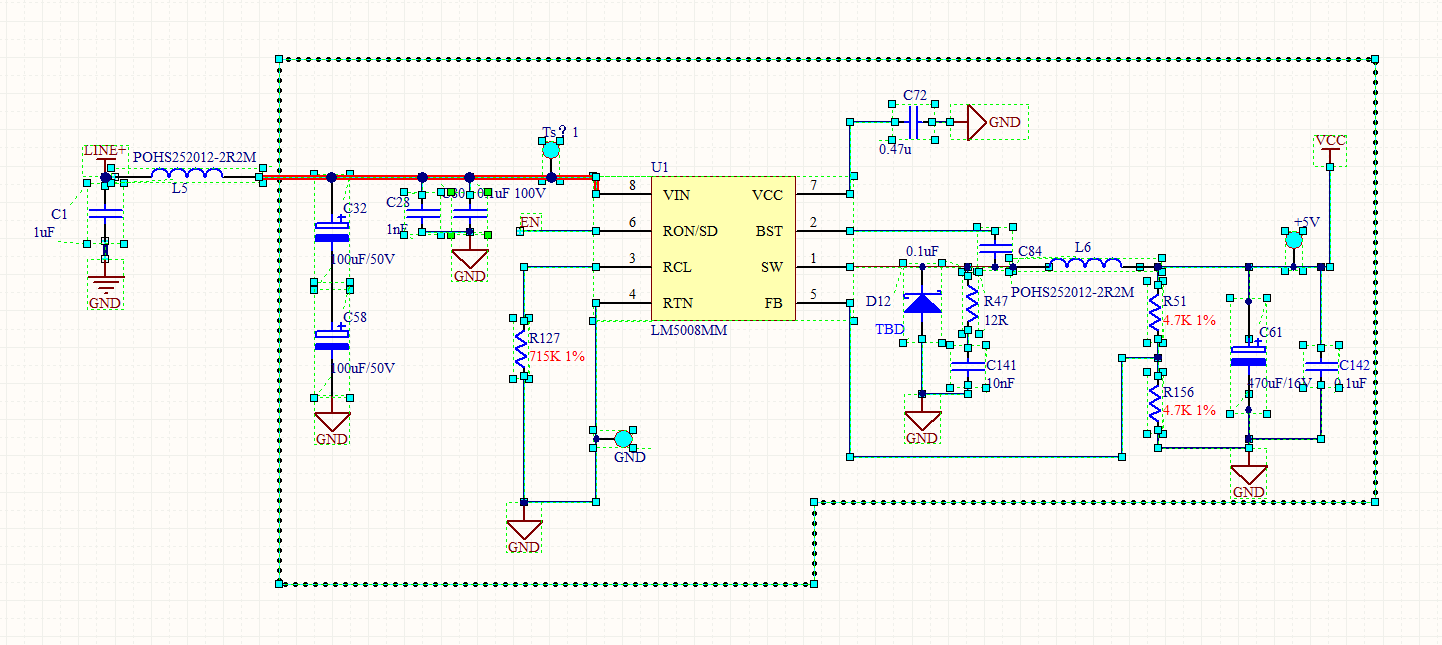 当LM5008的输入电压低于20V的时候,FB的管脚输出并不是2.5V而是1.5V,有没有什么方法可以让11V输入,输出5V
