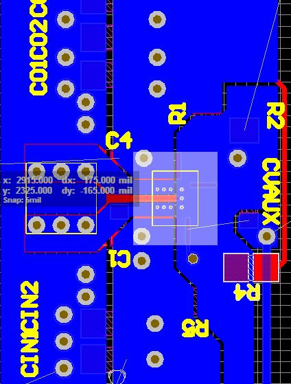 其次输入电容,还有反馈电阻尽可能的靠近芯片,但小信号部分最好和大信号离得远一点,避免串扰。