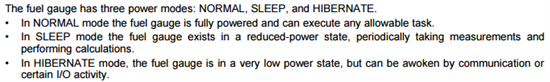 2. 要使得BQ27542功耗最低,请问应该工作在哪个模式呢?sleep、fullsleep、 hibernate or shutdown mode?