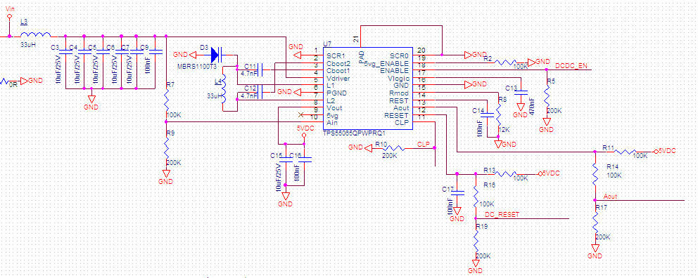 设计要求是需要在Vin输入为1.5VDC~15VDC的时候,电路能够工作输出5V/100mA(实际负载50mA左右)。