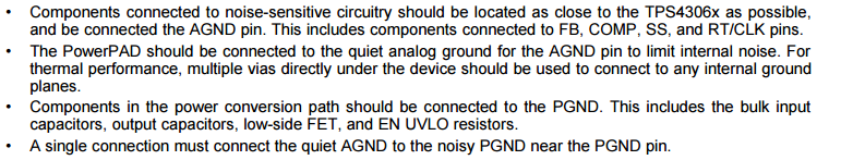 请问下大家在使用TPS43061芯片时, PGND与AGND是如何处理问题的,手册上说要区分 PGND与AGND,但仿真出的原理图没区分。