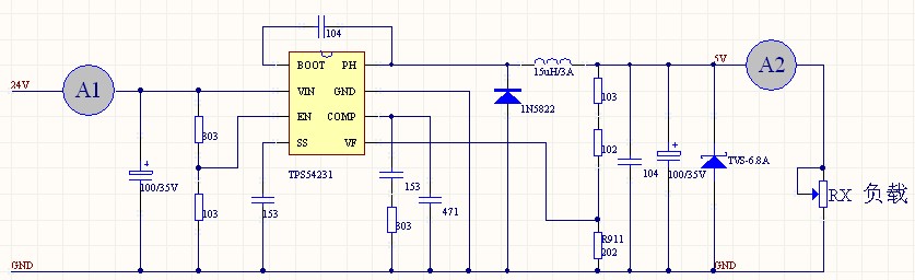 我在做一个24V转5V的DC/DC,电路搭建后调试正常,然而在做负载短路实验时,发现这么一个问题:输出我用短路线短路(短路可靠,我用焊接的方式把5V短路),24V输入的电流(A1)是0.17A,5V输出的电流(A2)是2.93A,然后测了TPS54231的8脚(PH),看到一个频率是66.7KHZ的波形,占空比是5%,我想问下,这是怎么回事?按照道理,短路了,芯片应该关闭输出或者是打嗝,但是就算是打嗝,66.7KHZ的频率是否太高了,输出电流接近3A,如果长期短路,那势必会损坏TPS54231,不知道TI的工程师能否帮我解决这个问题,谢谢!