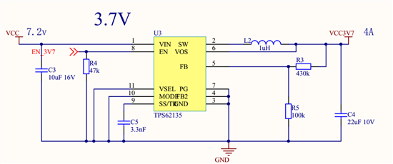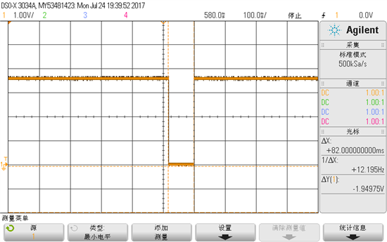 调试过程中,发现输出端在工作一段时间之后,存在瞬时掉电的情况,直接从3.7V掉为0,经过84ms之后,瞬态恢复3.7V,存在周期性变化。