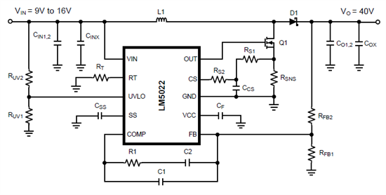 想利用LM5022实现9V输入,通过调节RFB1来使输出电压10-80V可调,但是实际只能升到45V,而且此时FB电压只有0.6V