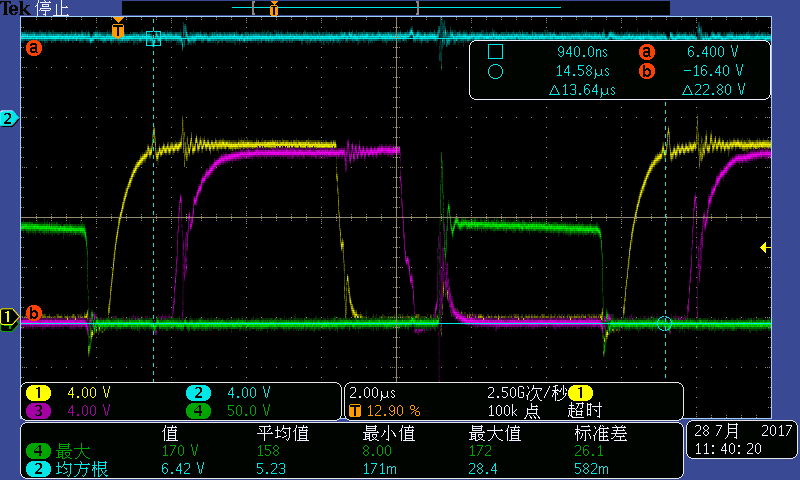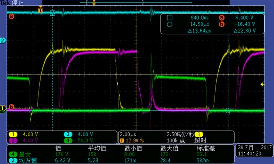 蓝色为1引脚的电压,当出现问题时已经升到6.4V了