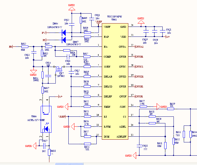 我在调试UCC28950的时候,遇到一个现象,产品在带载到1400W的时候,一切正常,到负载增加到1450以上的时候,芯片1引脚的电压(5V)基准,开始缓慢升压。因为误差运放的基准电压是由5V分压到2.5V,5V升压后导致了产品的电压也升高,(至少能升高到6.4V以上,但是电压升高时的驱动还是稳定的)。然后我将误差放大器的基准电压由外部单独输入,这样可以保证输出电压不变化,但是当基准电压升高到6.4V以上时,驱动开始不稳定了,我想询问下,芯片的基准电压为什么会变化,而且会印象到产品的驱动输出
