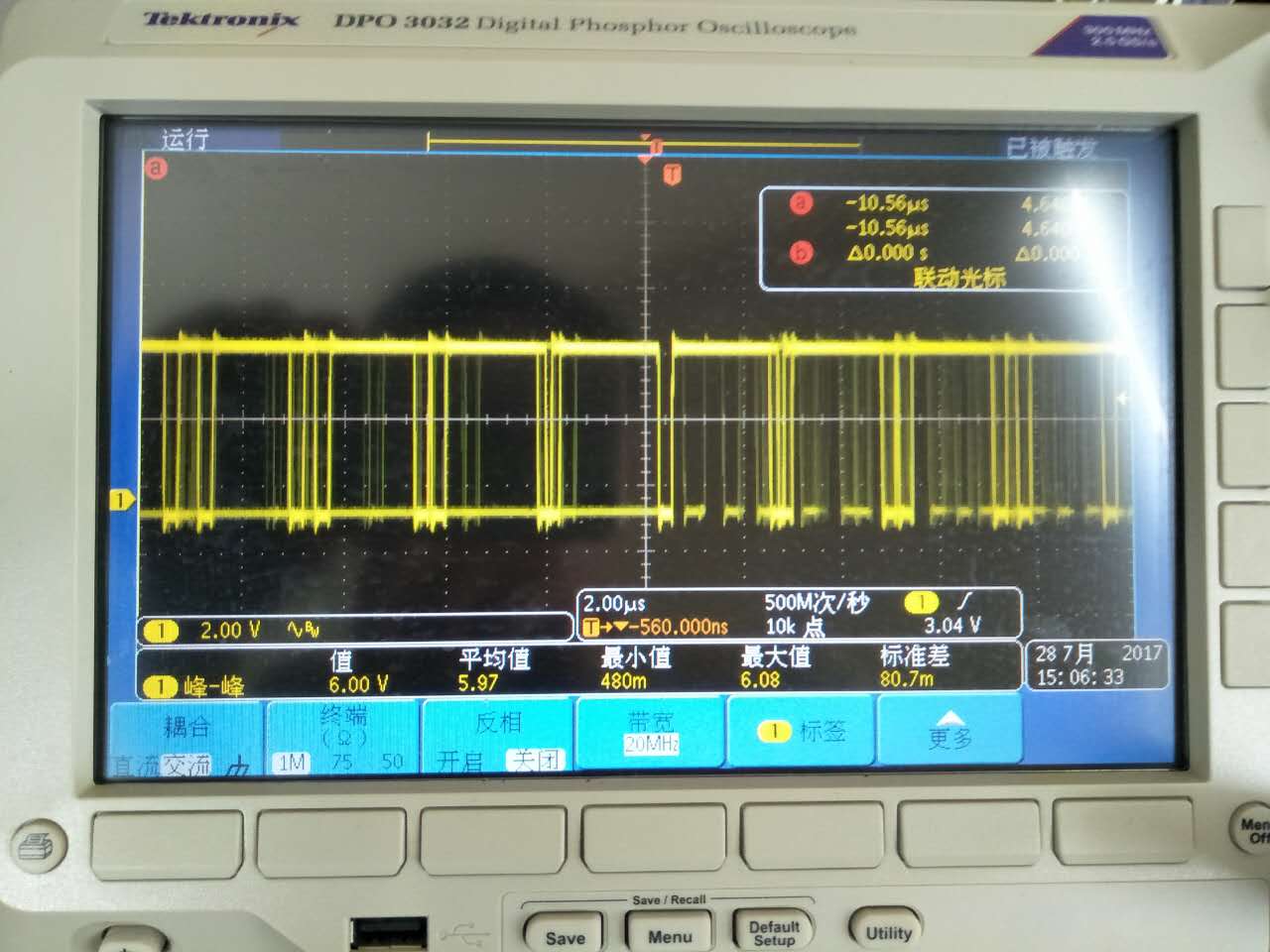 • 同步问题,示波器没调号。