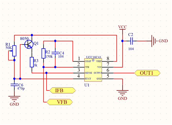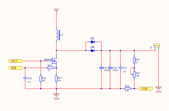 我准备设计输入12V,输出24V,最大电流4A,按照这样计算,占空比为百分之50,电感平均电流为Io/(1-D)=8A ,纹波系数按照精通开关电源设计上面取0.4,那么峰值电流为9.6A,留一点余量,取10A,因为UC3843的CS引脚最大电压限制为1V,所以Rsense=1V/10A=0.1欧,我是这样计算的,不知道对不对;Rsense的噪声我没测,你说的先用小负载我试过了,小负载输出电压可以稳住,但是功率到26W左右的时候电压就稳不住了,电压一瞬间大幅度下跌。能否帮忙分析一下原因,谢谢