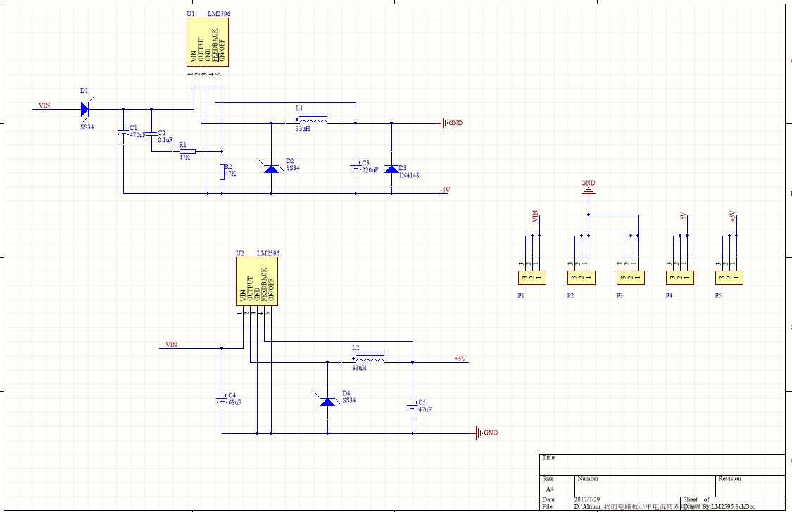 我用两个LM2596-5.0芯片产生一个负5V的电压和一个正5V的电压,在空载的情况下为什么正5V的芯片一点都不烫,但是产生负5V的电压的芯片十分发烫,这属于正常现象吗?