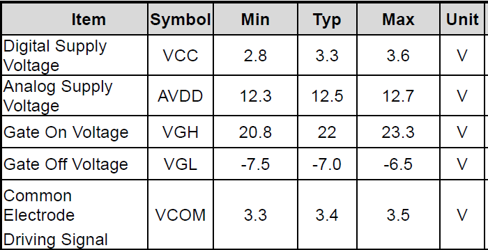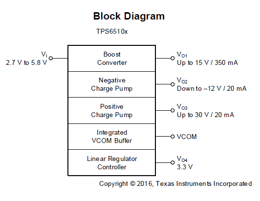 它的几个通路分别针对TFT屏的几个不同的电压需求: