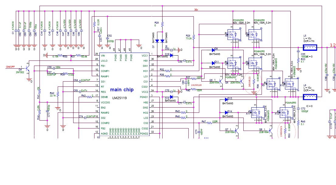 如附件原理图所以,小弟用LM25119做了一款电源,输出是12V&30A,主芯片的UVLO引脚用一个三极管控制芯片的on/off,目前关机信号及UVLO的 情况如附件图2所示,三极管基极加一0.7V的信号,UVLO脚可以拉低到0V,持续时间是300ms。现在的问题是,这个300ms的时间无法关掉LM25119的输出。 请问一下,当UVLO拉低后,LM25119需要延时多长时间才会关闭输出?有没有办法调整这个延时的时间,或是其它的方式控制lm25119的输出? 谢谢!