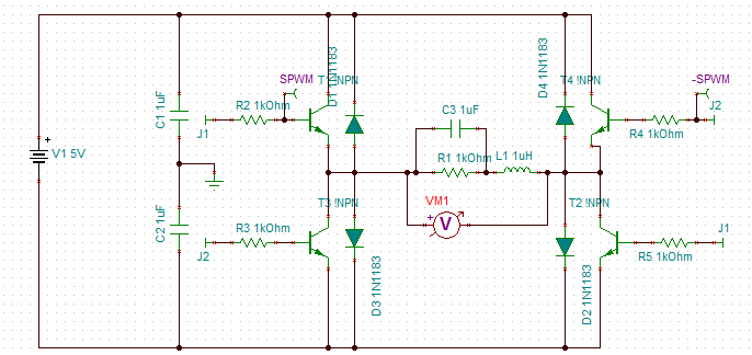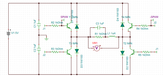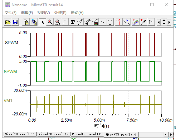 用比较器生成的SPWM,直接驱动控制三极管导通。为什么中间负载输出的不是正弦波也不是方波?电路图如下