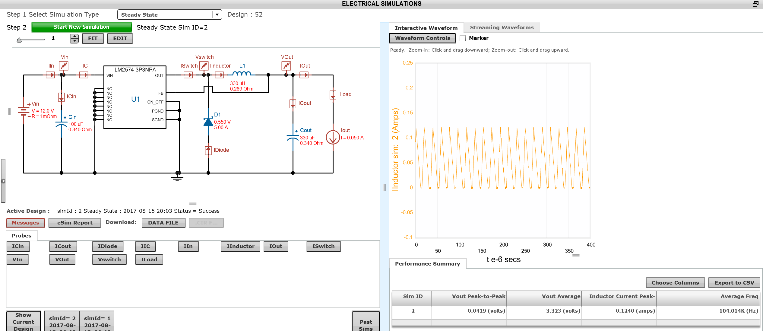 我仿真了Vin=12 Vout=3.3V Iout=0.05A 结果如下图