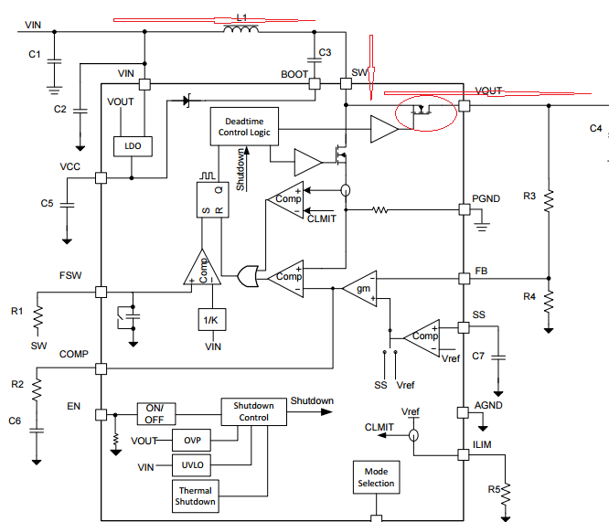 3.我们采用的资料上推荐的电路,在EN脚置高电平,输出9V电压且带载正常。为何置低时就无法完全关断呢?请哪位高手帮忙指点下。
