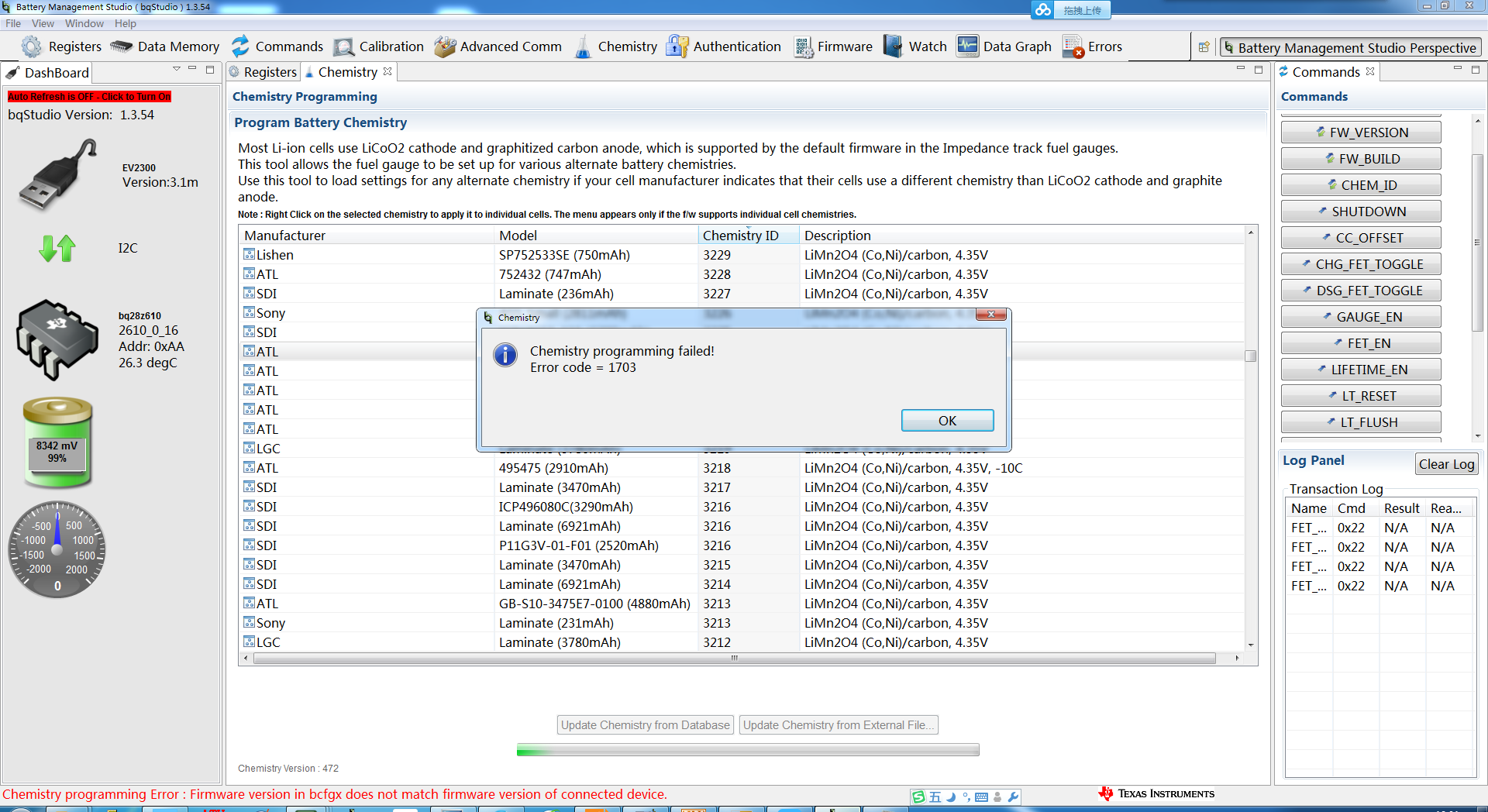 这是什么原因?在校准之后,更新chemid,更新不了? bq28z610