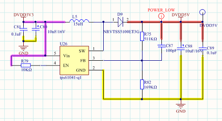 我使用TPS61041-Q1芯片实现3.3V转5V供电,原理图见附件。其所用器件均在原理图中标出。