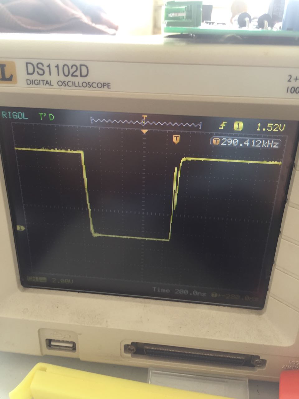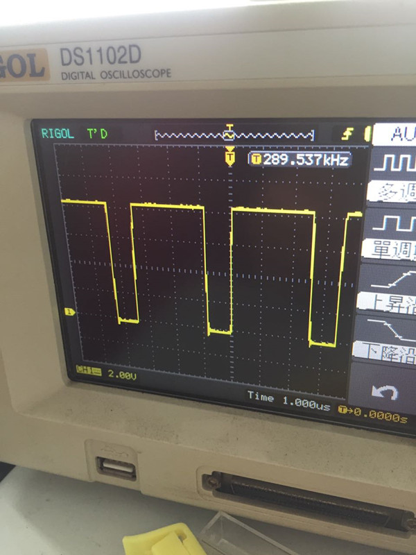 将频率降低到100kHz以下,如果上升沿的异常消失,你或许要增加额外的驱动电路。
