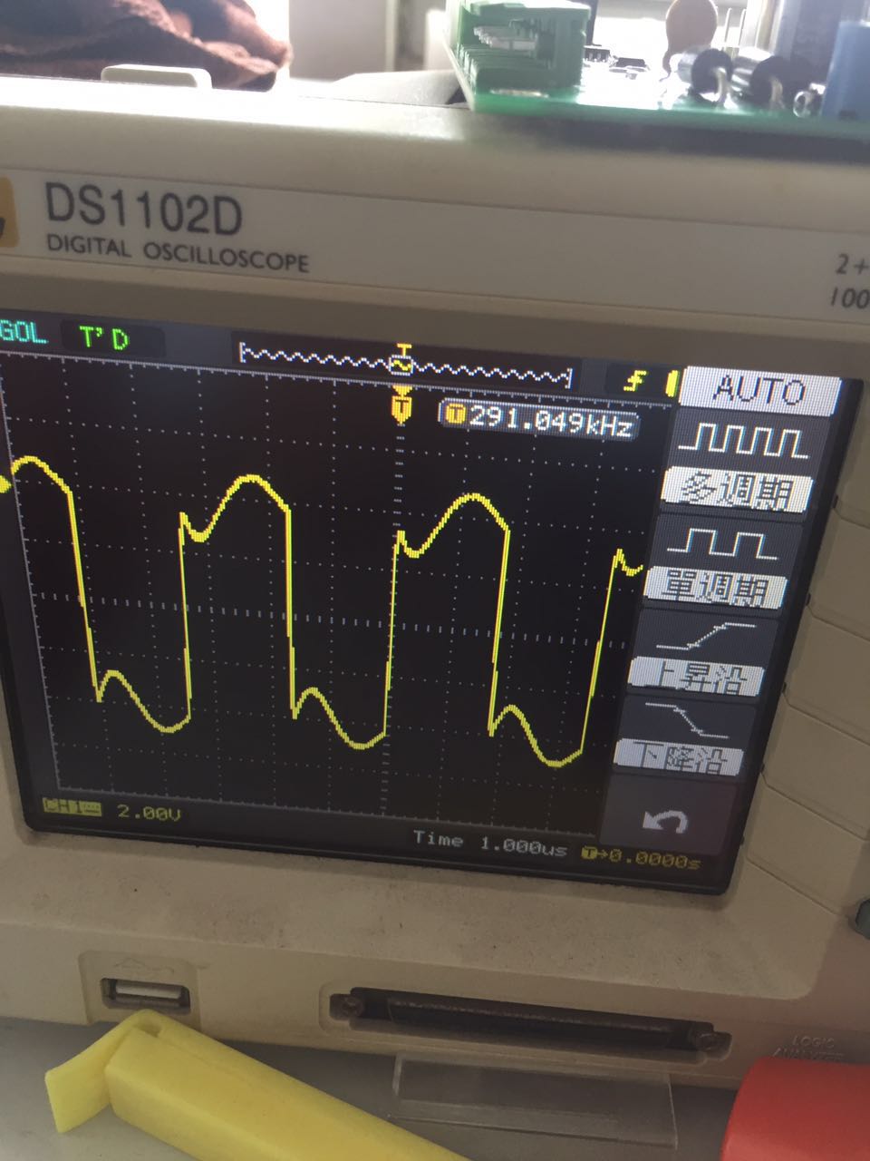 频率降到109k后上升沿那里没有改变,但MOS管发热量低了很多,不怎么发热了,电感温度升高,电感有70多度了