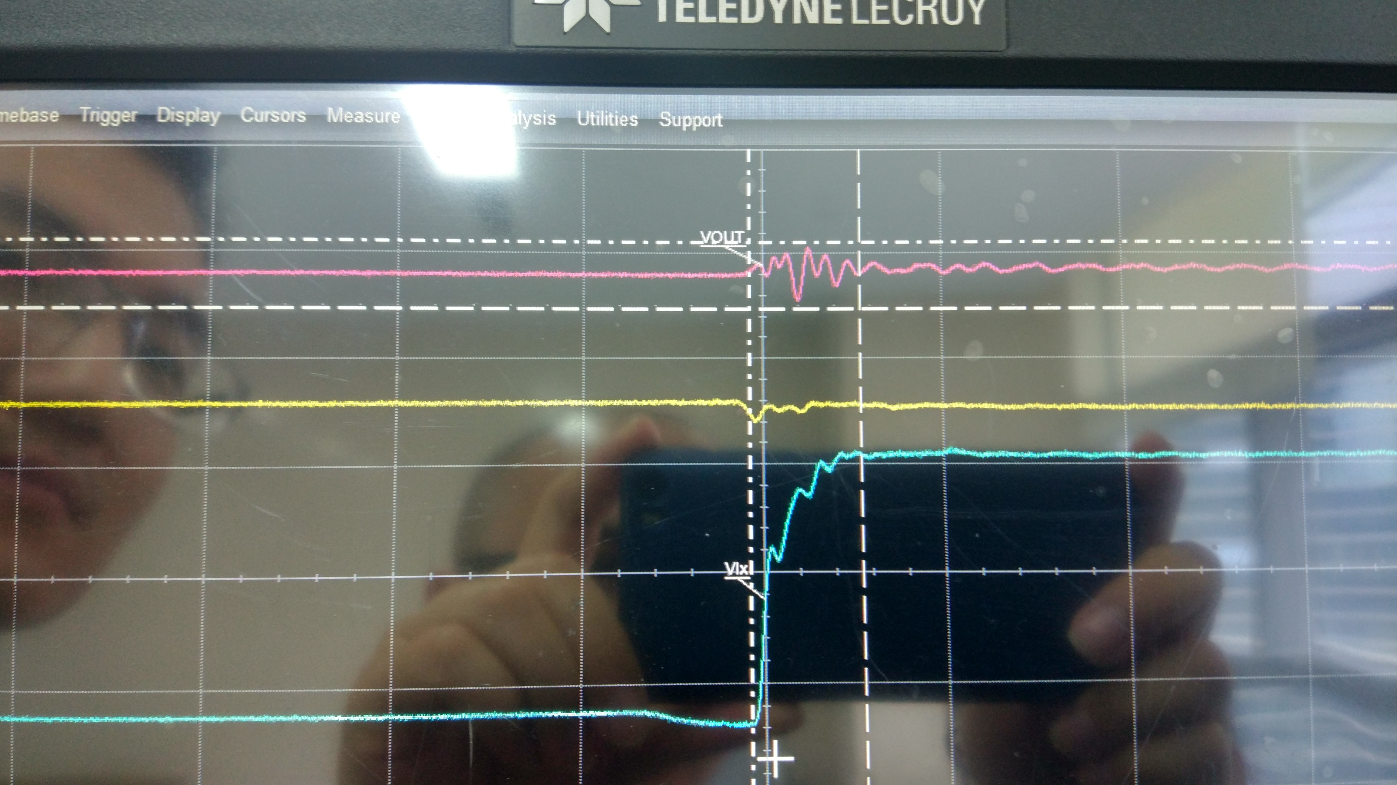 我们使用TPS53355设计了一个12V降压到3.3V/30A,能正常工作,我们在原有的PCB板和原理图上改为输出1V/30A(只修改了VFB的电阻),原理图如下,PCB如附件。测试发现出现一个很大的纹波(空载和满载都有),纹波最小值为0.5V,最大值为1.5V。但这个纹波是在上管开通的时候出现,如下图是后面两图所示(最上面的波形),修改了R452改为15K也是一样的结果,将电感更换为0.4uH测试结果也一样。将工作模式由CCM更改为Skip模式测试结果也一样。改变开关频率也测试结果也一样。请哪位大侠分析下原因,谢谢!