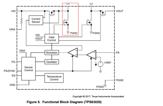 纠正一下,BUCK模式下,是L2管脚处连接到地的MOS管一直关断,第一和第二(红框)是交替开关动作。