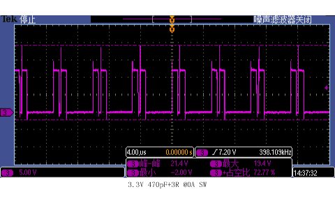 a.我将电感与PCB之间带间隙焊接后,占空比得到修正。(电感若紧贴PCB,则占空比会出现异常,但输出电压正常。)