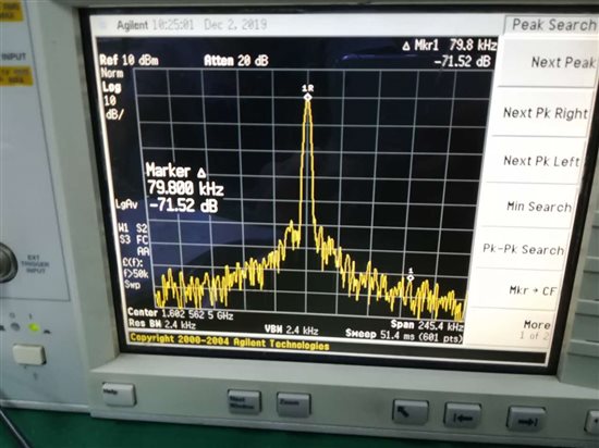 1,你的频谱仪的中心频率是1.6GHz,span是240KHz,但是你的右边的那个mark的频点为何是79KHz左右。