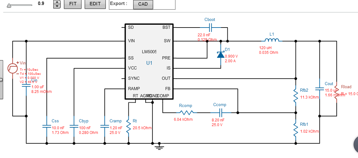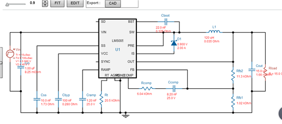 为什么LM5005无法通过修改反馈电阻来改变输出电压,输入48V,输出13.5V没问题,当改变反馈电阻来调整输出电压为15V时,输出变成了90Hz的锯齿波