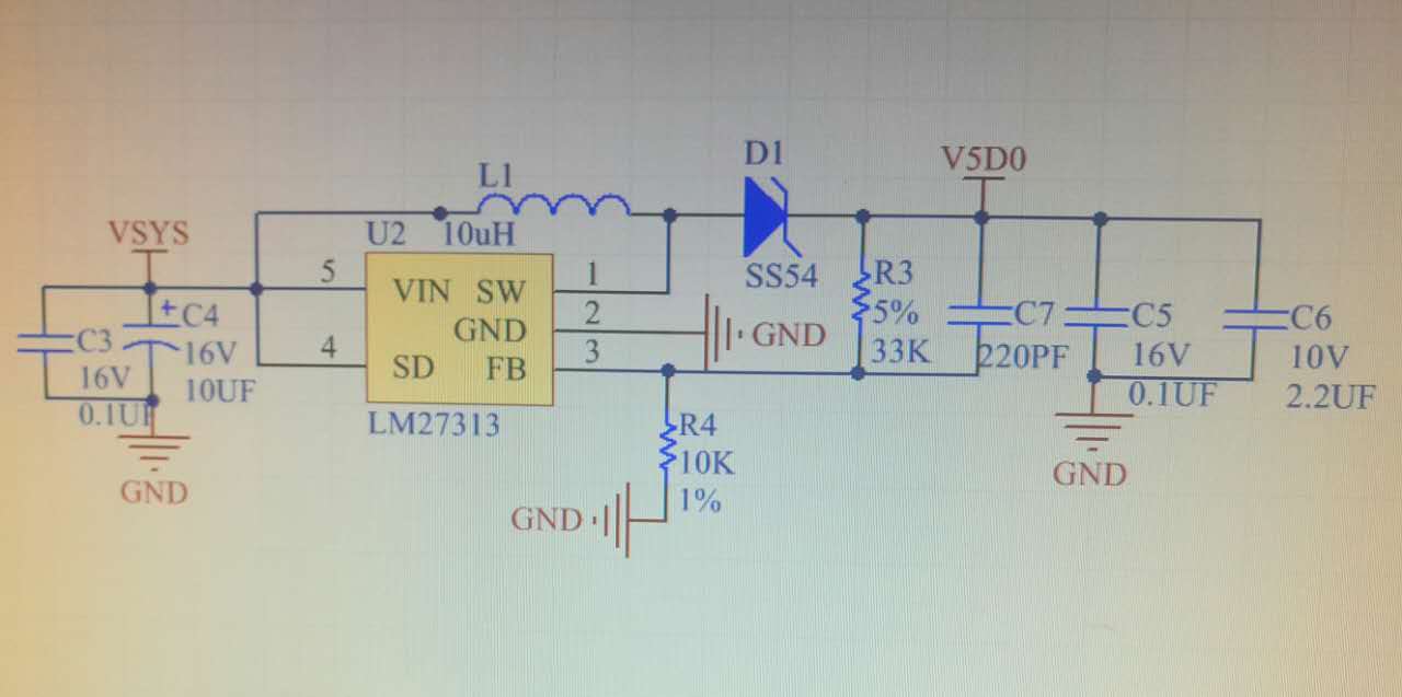 我现在LM27313做一个3.8-5V的升压电路,电路无负载时可以正常升压,加上ESP8266  WiFi模块后无法正常升压,不知道是不是输出电流不够,因为参考手册计算出的占空比是85%,而手册里面写是要达到800ma的输出占空比需低于50%,那么我该如何降低Vsw?设计电路如下,请各位大佬帮忙看看,谢谢!
