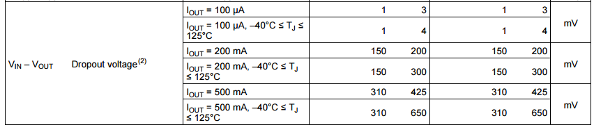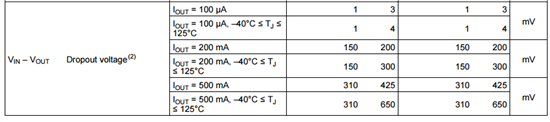 这是否和低压差矛盾,最低电压差为310mV(Dropout Voltage: Typically 310 mV at 500-mA load,and 1 mV at 100-µA load.) 。
