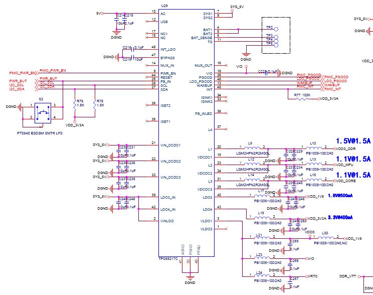 其中DCDC3的输出在上电系统尚未开始工作时为1.1V,系统开始工作以后DCDC3输出变为0.95V,系统工作不正常。刚开始怀疑可能是供流能力不足,将DCDC3输出断开,给3358的VDD_CORE外接了一个1.1V电源,系统工作正常,此时测试DCDC3的输出,仍然是0.95V,请高手帮忙分析一下原因,非常感谢。