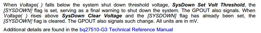GPOUT引脚的功能选择如下图,截自bq27510-G3 Technical Reference Manual: