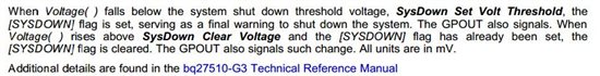 目的:电池电压低于SysDown Set Volt Threshold时,PGOUT可以拉低(外部接上拉电阻);电池电压高于SysDown Clear Voltage时,PGOUT恢复为开漏高