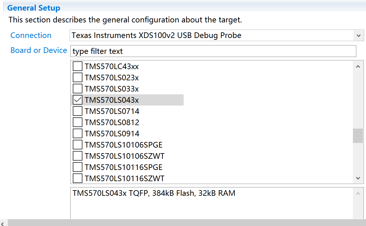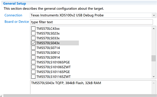 用CCS进行Debug时,选择对于烧写工具和MCU: