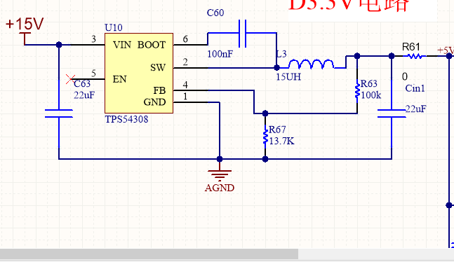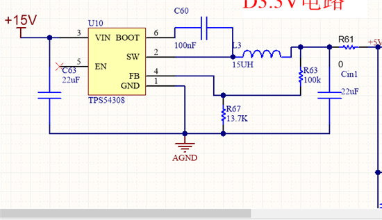电路焊接完成后,接通电源16.2V,TPS54308的VIN是16.2,EN悬空,输出端SW输出0.07V,本应该输出5V的不知道为什么,而且FB引脚电压是0.05V,按电阻分压原理不应该是这么多的。不知道哪错了