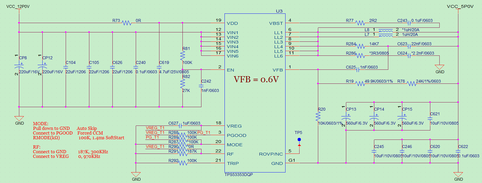 之前的产品中使用TPS53353作为12V转1.2V,电路sch 和 pcb如下