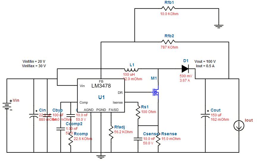 这款芯片能将电压升到100V吗?还有就是TI提供的电路设计中的元器件参数可靠吗?