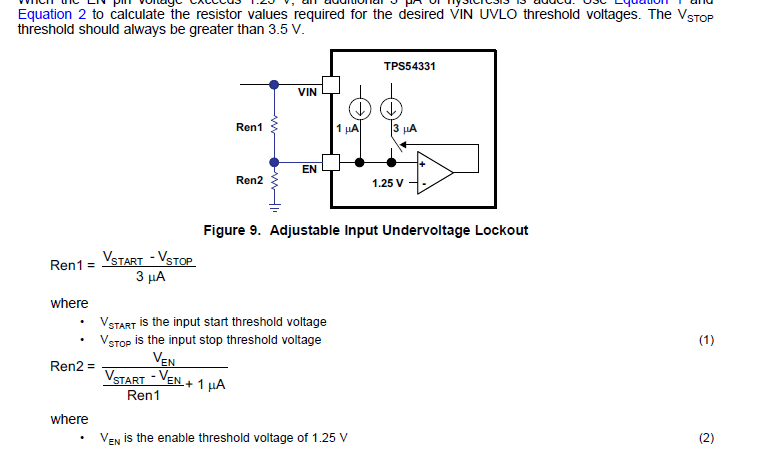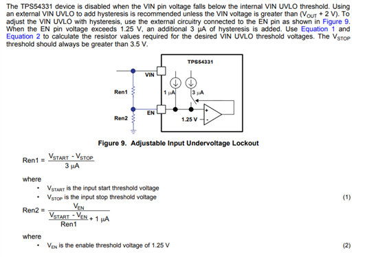 查找了很多电源管理的芯片 TPS54331这个好像能满足要求。现在是前期设计阶段,没有拿到芯片。所以想咨询一下:DATASHEET 里面的 Vstart 和Vstop 是否就是我需要的这个?
