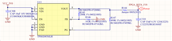 TPS82085电路参照芯片手册推荐电路设置,3.3V、2.5V、1.8V输出电压均错误,请问大概什么原因造成这种现象?