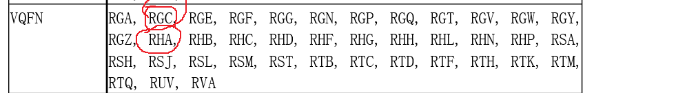 TI VQFN封装中 RHA & RGC的区别是什么? 或者有相关的文件介绍吗?如下面图中所示