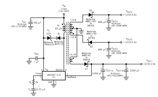 2、输出:+/-12V(300mA) 和 +5V(700mA)