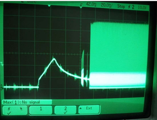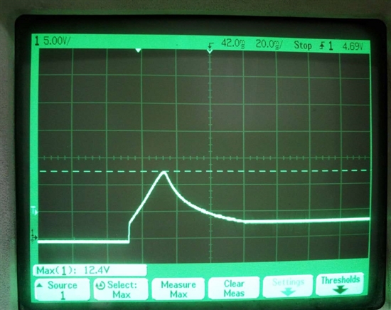 示波器测得有烧芯片时3.3V输出波形:输出过冲电压高达12.4V。