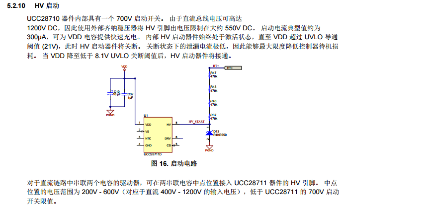 你好,请问将《用于电机驱动器的 400V 到 690V 交流输入 50W 隔离式反激电源参考设计》中的启动电压改变,变成200V启动,是重新计算公式15,RS1为50.1kΩ(RS2相应改动了),然后HV启动引脚上的电阻只留下一个,为什么启动电压是220V呢?