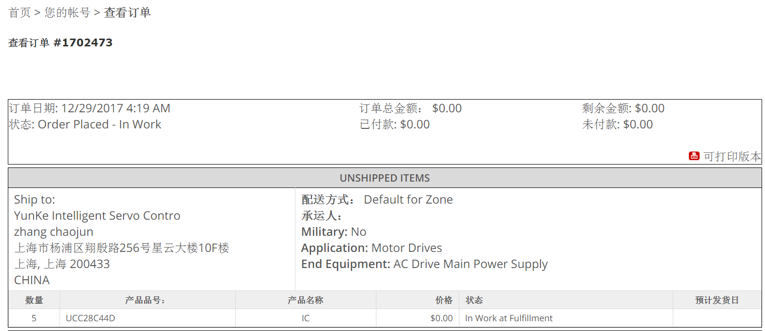 如果你时间超过一周,你可以发邮件到cnsampleconfirm@list.ti.com 问一下具体原因。