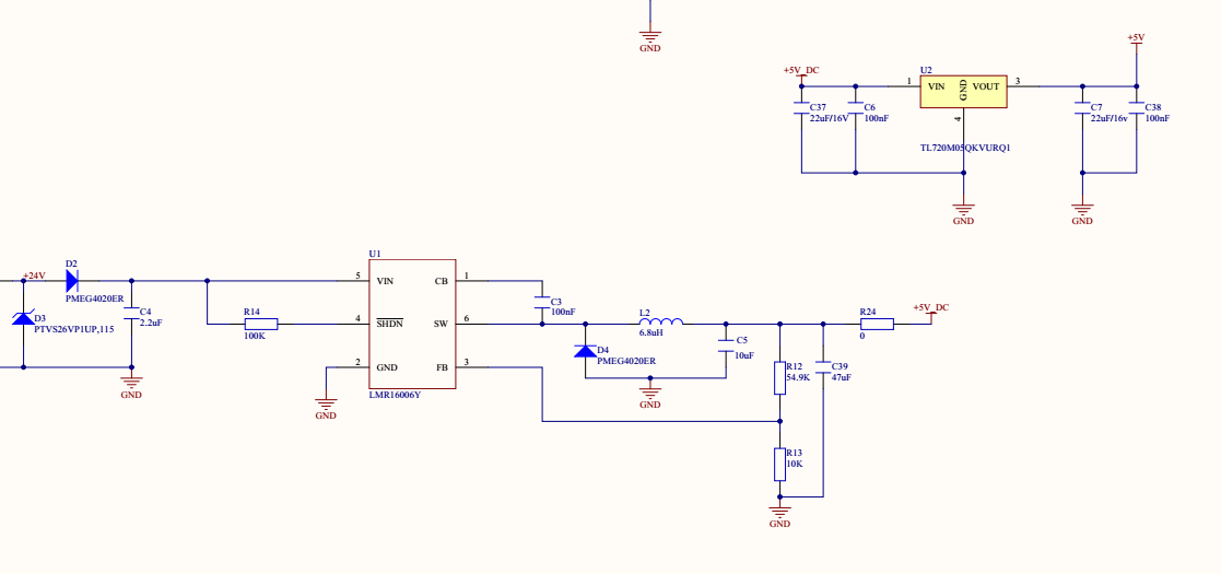 采用下图中的电路,发现Tl720M05输出纹波很大,想求教一下,该如何改进,采用多大电容比较合适。
