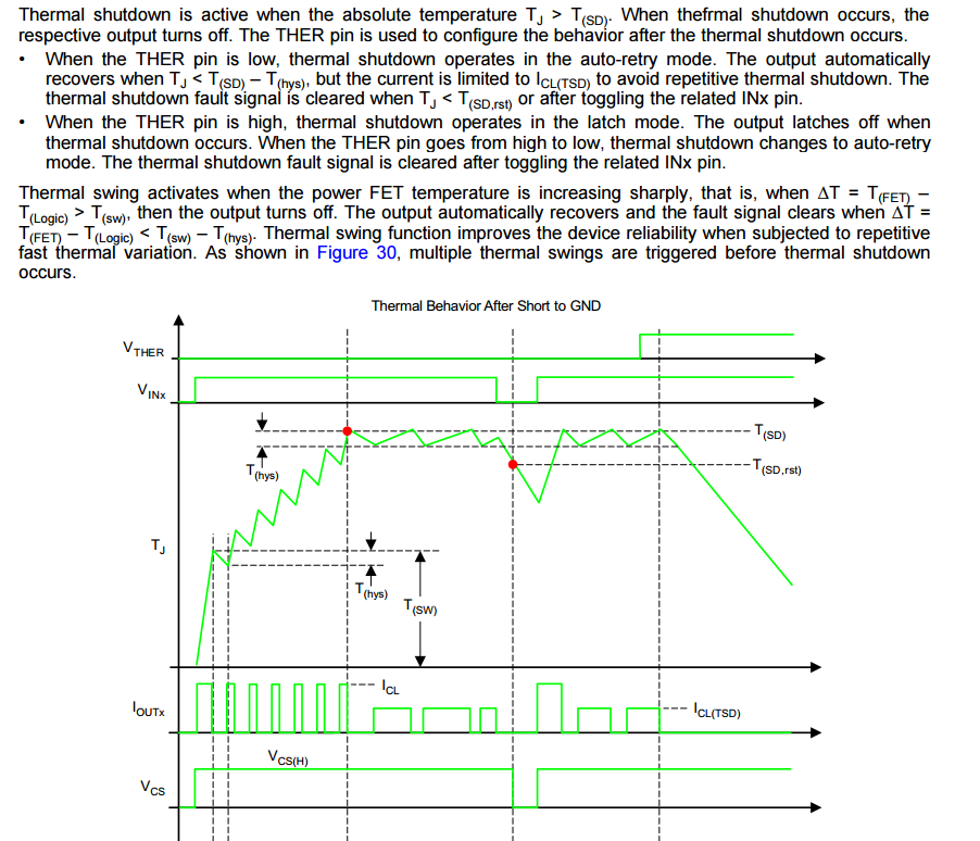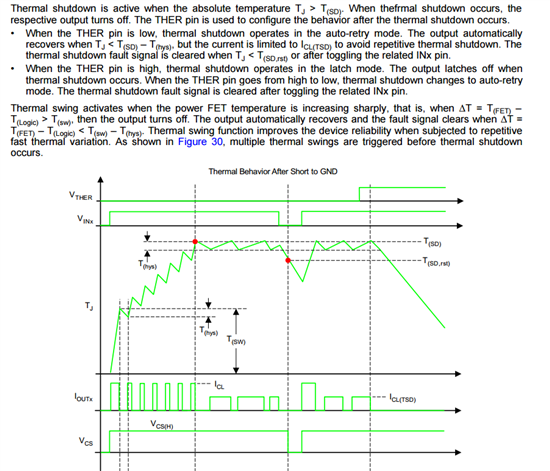 TPS4H160-Q1 规格书中Page 8有个参数Thermal swing shutdown threshold:60,这个是+/-60度范围得意思吗,如果这样温度保护“”Thermal shutdown threshold (1)”就变成100(160-60)~235(170+60),范围这么大,保护点怎么设。请帮介绍一下这个参数“Thermal swing shutdown threshold:60”,谢谢!