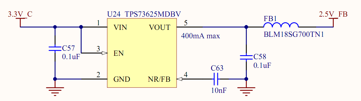 输入电压为3.3V,输出电压为隔离后的2.5V_FB。电容使用是否合理?
