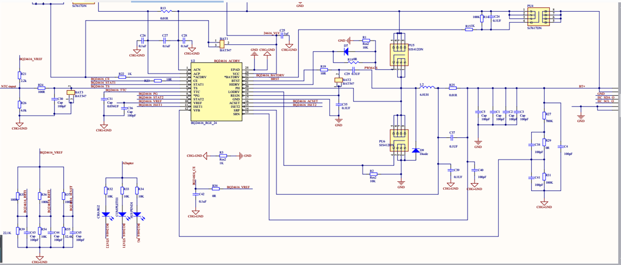 工程师请教个问题,我用BQ24616 和BQ24610焊接到同一个PCB板上出现了一个奇怪的问题,具体的电路图(就是把EVM板上的电路搬过来),但是测试时候出现如下怪现象,他们充电的上下管的控制波形不一致。