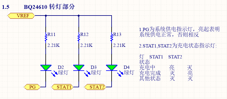 BQ24610EVM验证板上,STAT1,STAT2,PG的电路如下: